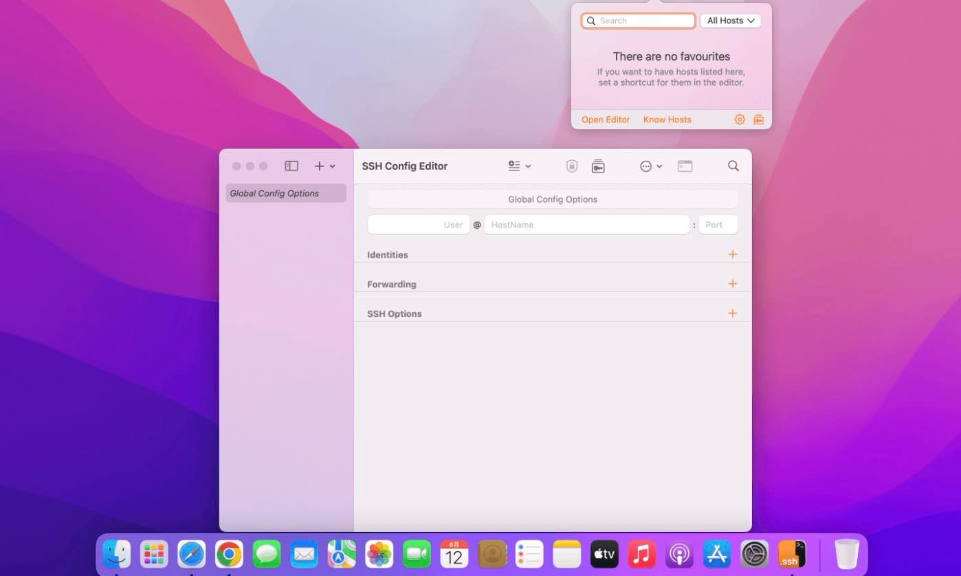 SSH Config Editor 是一款用于管理OpenSSH ssh客户端配置文件的工具。使用SSH Config Editor 可以管理您的SSH配置文件和known_hosts中文件。可以添加或编辑身份,端口转发和任何其他ssh配置选项。以一种智能,高效的方式管理您的SSH配置文件。