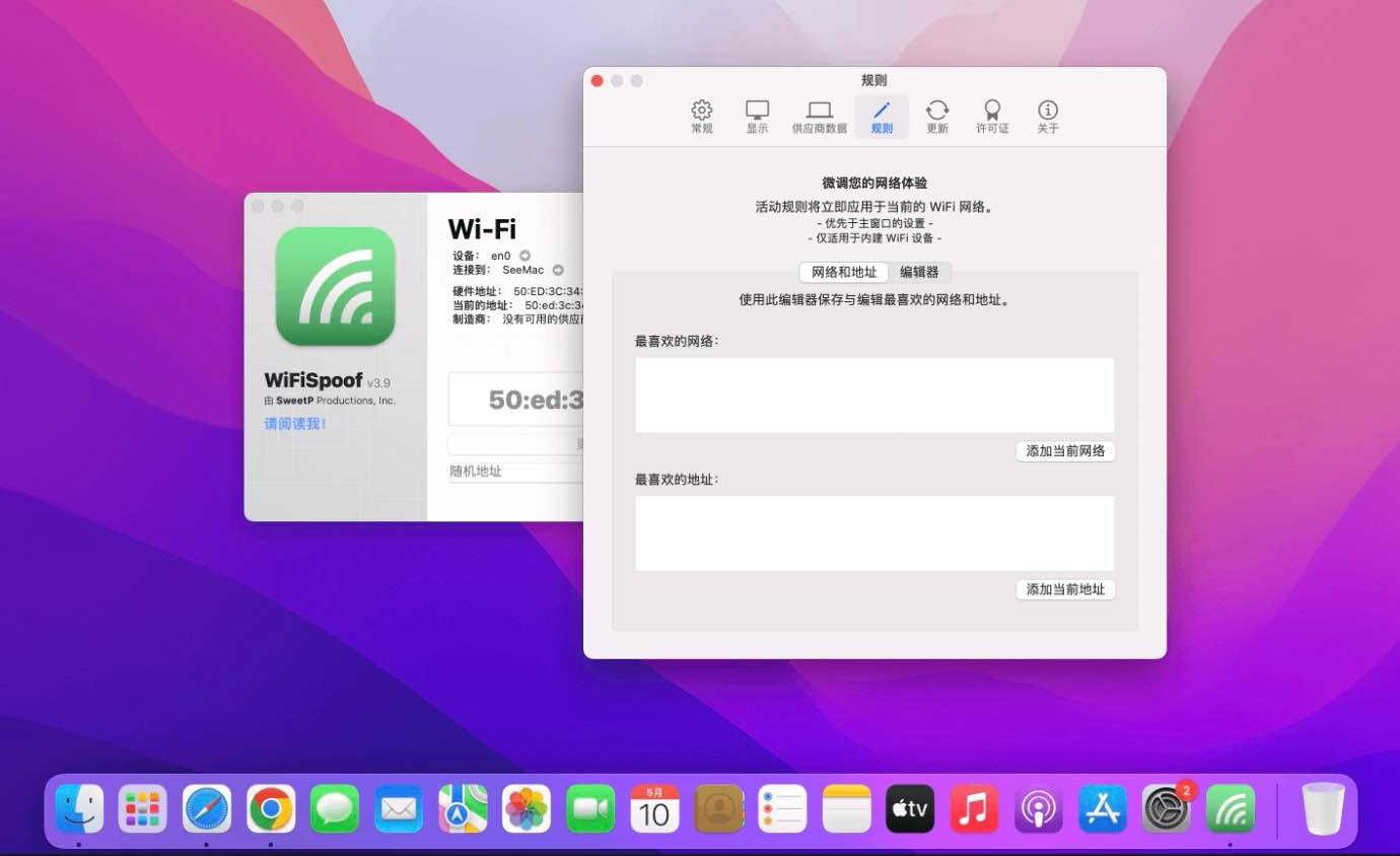 WiFiSpoof for Mac是一款十分便捷的Mac地址隐藏修改器,使用这款软件可以自动生成随机的MAC地址,避免一些网络限制,并在浏览公共Wi-Fi网络时保护您的信息。如果你想要在使用公共网络的时候保护自己的信息,那么这款软件来隐藏自己是很有必要的。
