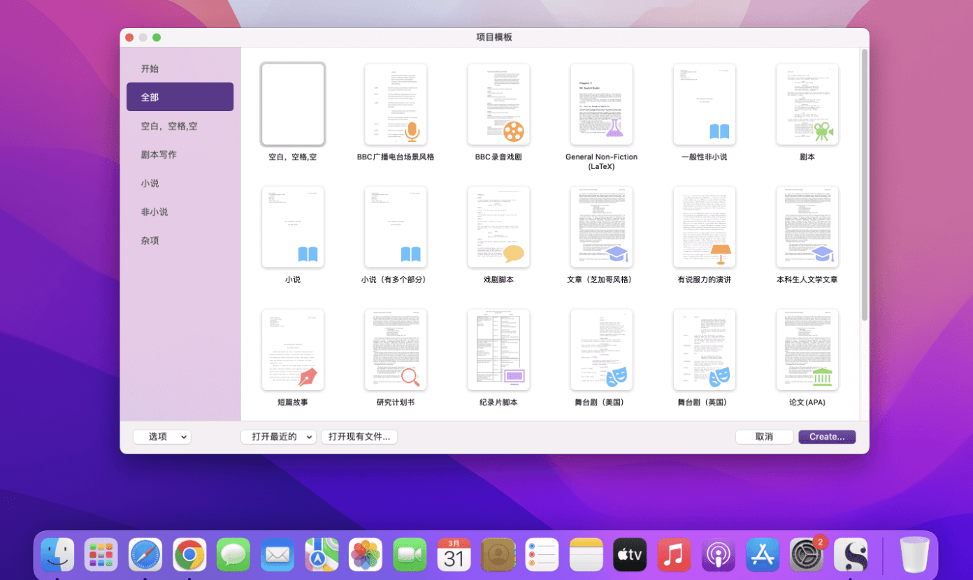 Scrivener for Mac 是一款十分强大的Mac写作软件,跨平台。它主要针对的目标群体是职业写作者,除了小说创作以外,也适合剧本创作、写杂文、BBC录音戏剧、写文章、写短篇故事、写研究计划书、写纪录片脚 本、写舞台剧本、写诗歌、食谱集创建、乃至学术论文等的写作。