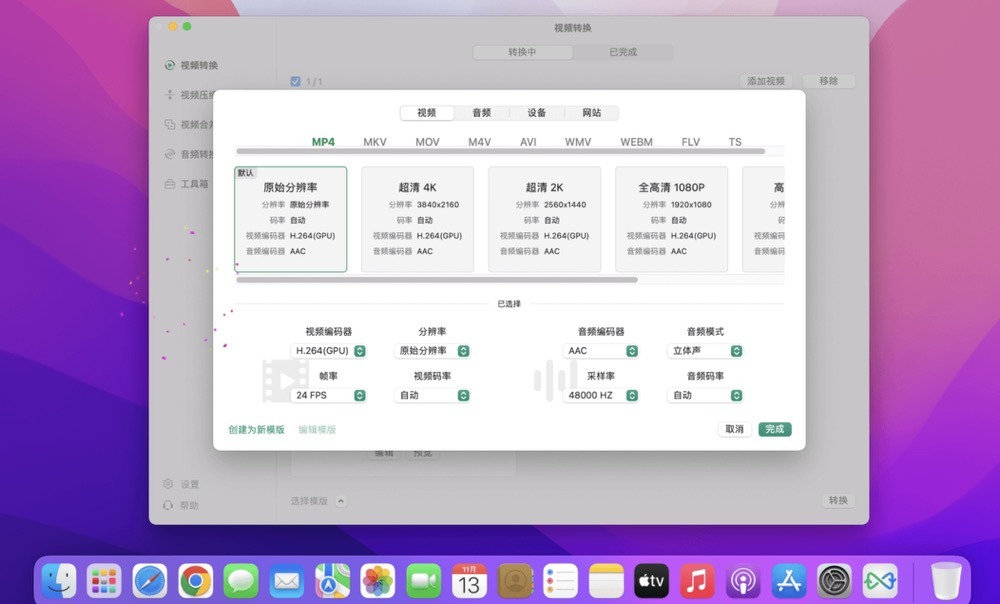即刻转换内置多种设备模版,如Mac、iPhone、iPod、Android、Windows、TV等,使你不需要去费劲研究不同设备对应什么播放格式,而是直接从即刻转换的模版列表中选择你需要的设备类型,就能轻松开始转换。
