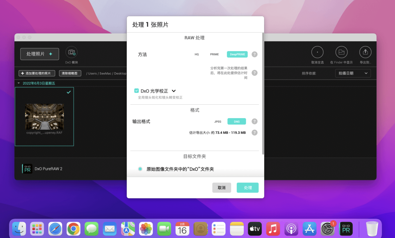 DxO PureRAW 是一款 RAW 文件编辑器。借助 DxO 独有的去马赛克,去噪和镜头缺陷校正技术,可以在 Adobe Photoshop,Lightroom 或其他程序中对它们进行修饰之前创建更好的 RAW 文件。DxO PureRAW 的人工智能在保留细节与消除噪音之间达到了完美的平衡,利用 DxO 专门设计的光学模块自动纠正设备中的缺陷。你还可以编辑由于图像质量差,噪点或缺乏清晰度而搁置的旧照片。DxO PureRAW 揭示了您捕获的每种纹理的所有细节和技巧,因此您可以欣赏令人难以置信的纯照片。永久删除相机在照片模糊区域中产生的“寄生”颗粒。DxO PureRAW 为您的图像增添了令人难以置信的柔和度。在使用常规编辑软件之前,请先使用 DxO PureRAW,然后单击几下即可将 RAW文件转换为 DNG 文件,而无需进行复杂的调整。