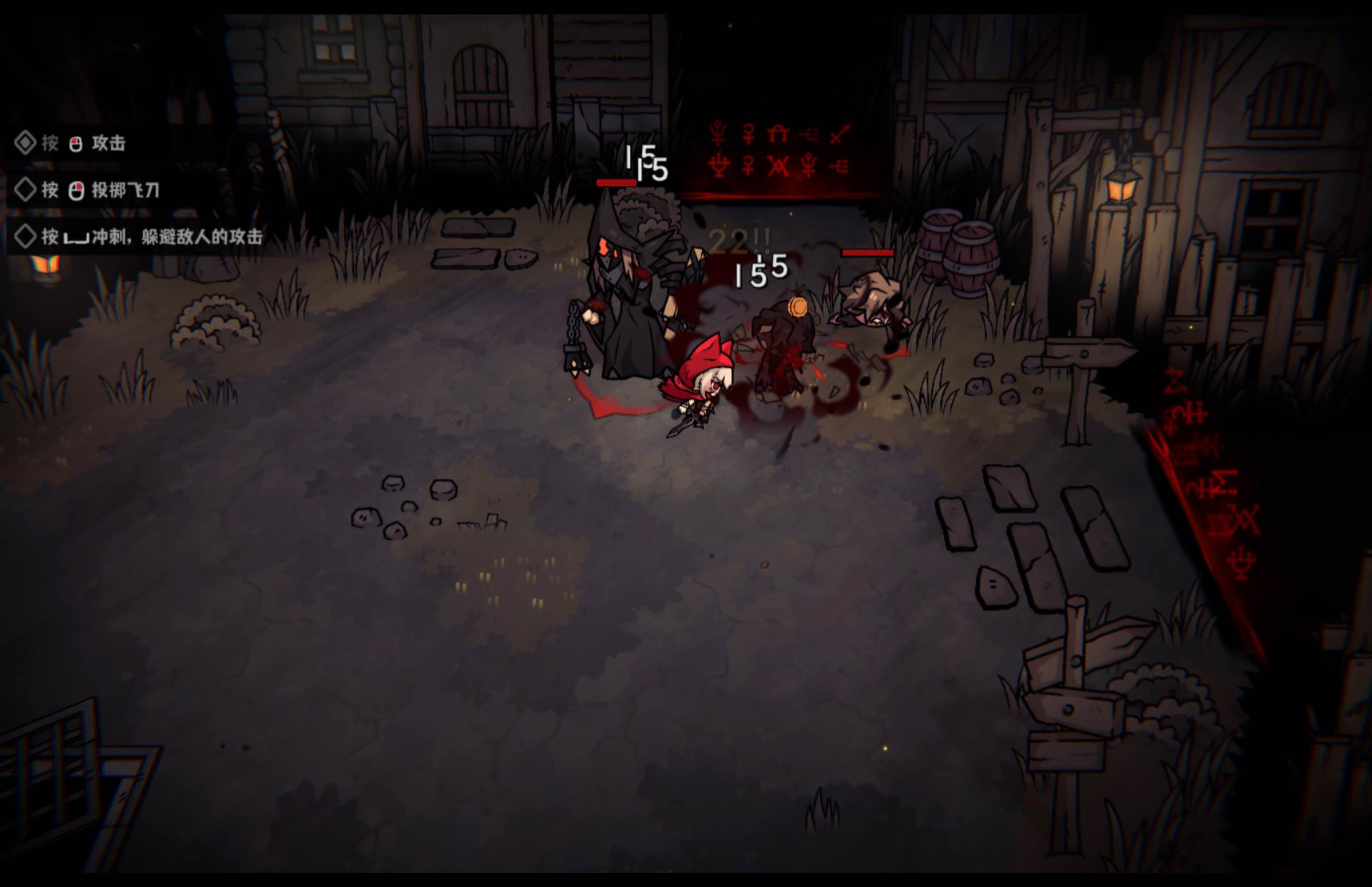 游戏的战斗体验才是重中之重,简单来说角色有多种进攻词条,以小红为例子就是刺、砍、踢等等,本以为没什么太多用处但是其实与被动深度契合可以就攻击方式组合出相当多的玩法。除了战斗动作外,还可以通过被动、主动技能来组合出诸如毒等buff流玩法,能感觉出每个角色得玩法都有相当多的种类。在这里笔者拿一个通过关得战斗流派说说——戳刺流,主要依赖一个主动技能可以一个q戳刺6下,再加上20%秒杀等等,直接一个技能杀所有小怪,到后期爽感倍增,突出一个砍就完事了的快乐。