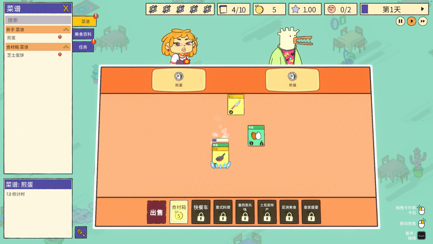 打开你的卡组,精心摆设厨具和食材,遵循经典食谱还是勇敢创新,探索前所未有的美味组合,全由你掌控!今日主厨特选,就在你的巧妙搭配之中。