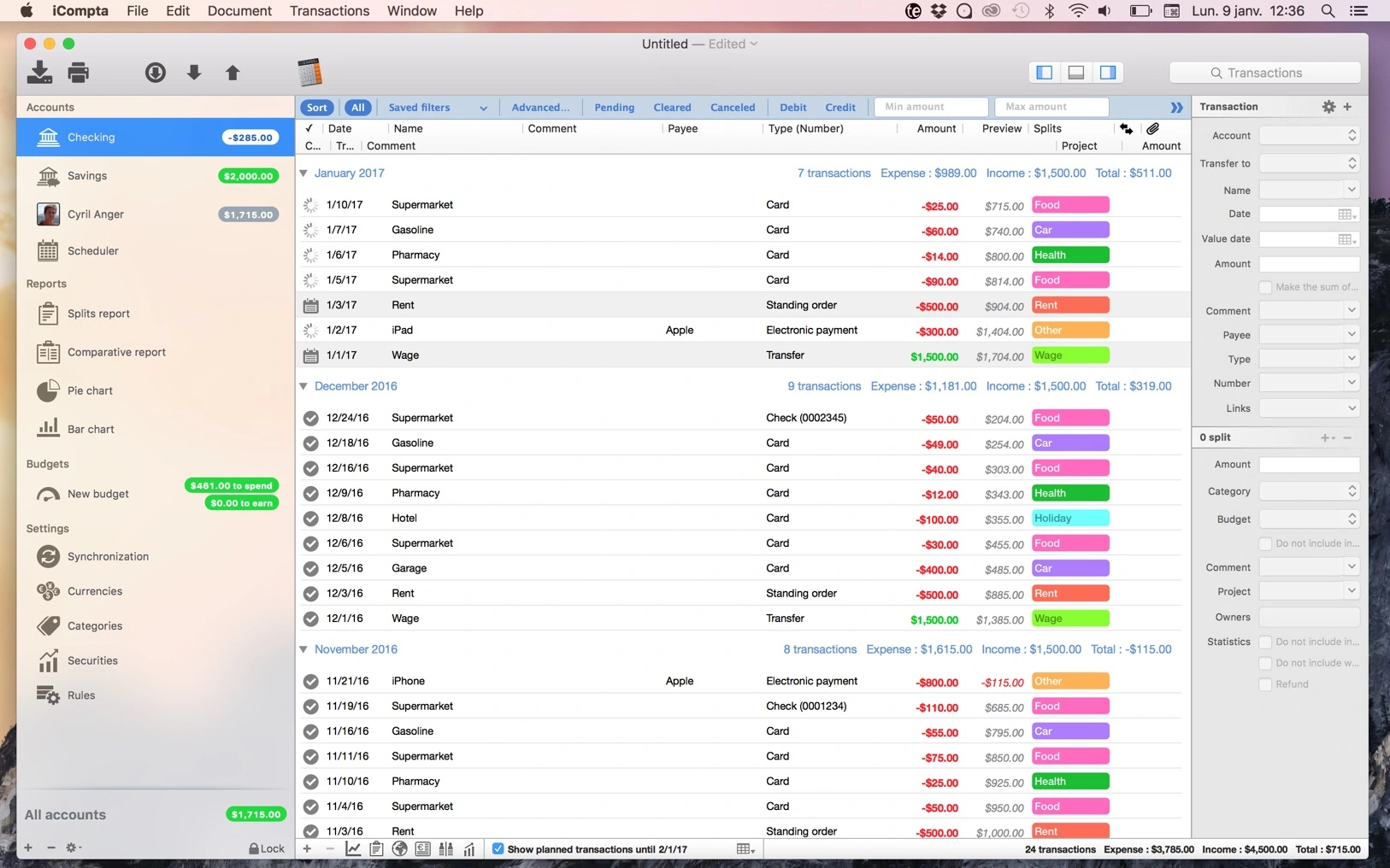 iCompta for Mac是一款可让您轻松管理帐户的应用程序。跟踪收入和支出,安排帐单,与预算保持一致,并通过精美的图表最终了解所有资金的去向。iCompta 可以使用多种货币管理多个帐户、对交易进行分类和过滤,以统计您的收入和支出等等