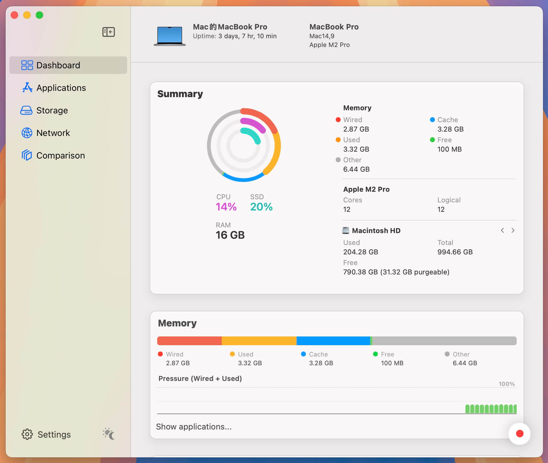 iStatistica Pro (含iStatistica Sensors 温度监控模块) 是一款非常漂亮的菜单栏mac系统监控工具。包含:Mac 系统摘要,Mac电池信息,Mac网络监控,Mac温度传感器监控,Mac磁盘管理,Mac CPU使用率监控,Mac内存使用率监控。支持统一显示(模块集中在一起通过菜单栏下拉展示)和独立显示模式(模块在菜单栏中独立显示)。还有一个仪表盘,可以详细查看各模块的相关数据。