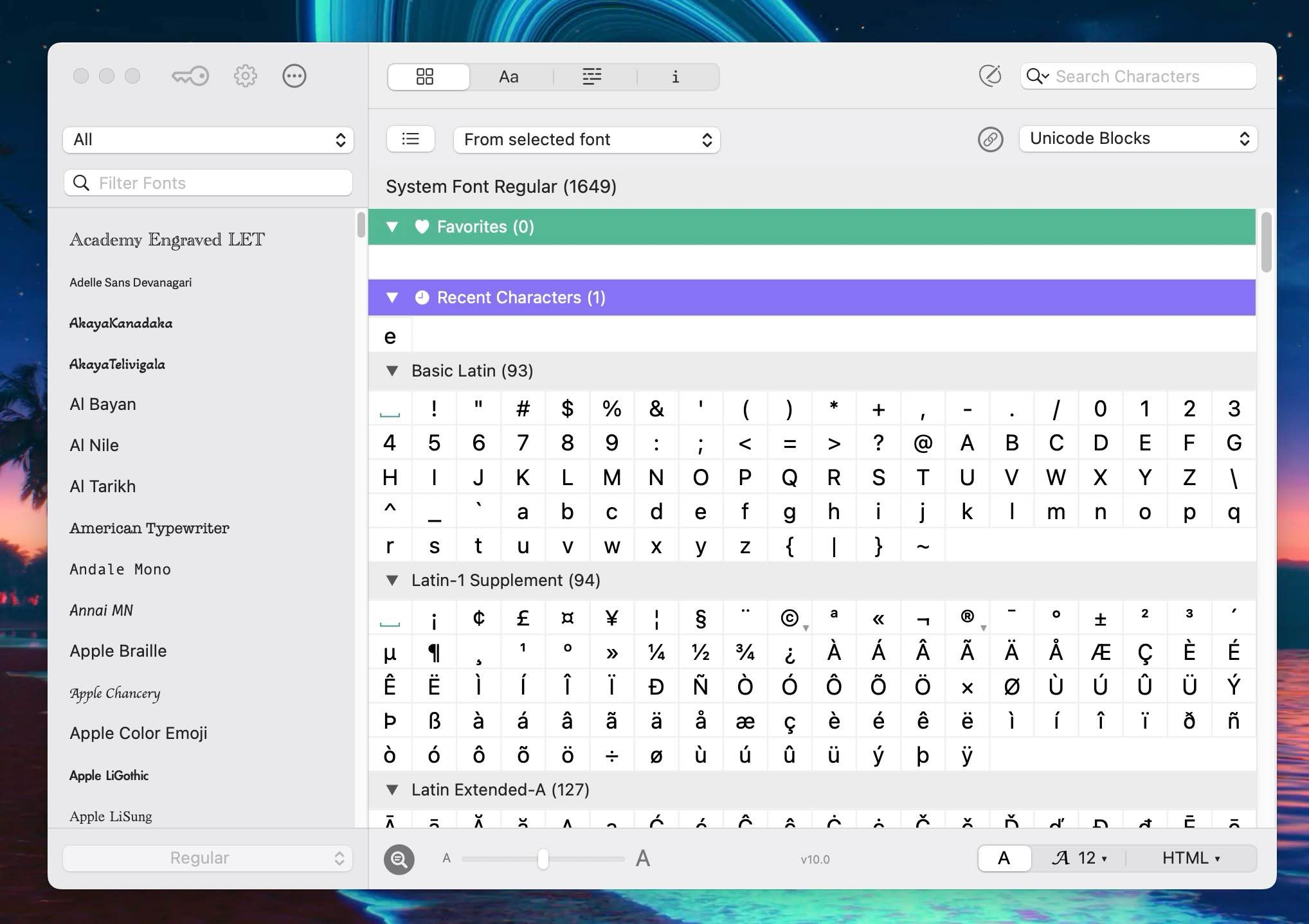 大多数字体包含数千个字符,比您从键盘访问的字符多得多。如果你想充分利用你的字体,那么PopChar是适合你的工具。PopChar可以轻松地“输入”不寻常的角色,而无需记住键盘组合。每当你需要一个特殊字符时,PopChar就可以提供帮助。单击菜单栏中的“P”以显示字符表。选择所需的字符,它会立即显示在您的文档中。PopChar适用于支持Unicode的所有现代应用程序。它可以在包含数千个字符的字体中轻松导航和搜索。按名称或形状搜索字符,查找包含特定字符的字体,浏览字体字符集,收集喜欢的字符,插入HTML符号。PopChar使所有这些与字体相关的任务变得容易。使用PopChar,您还可以从设计者的角度查看字体 – 查看字体预览,查看特定字体中给定文本片段的外观,以及打印漂亮的字体表。