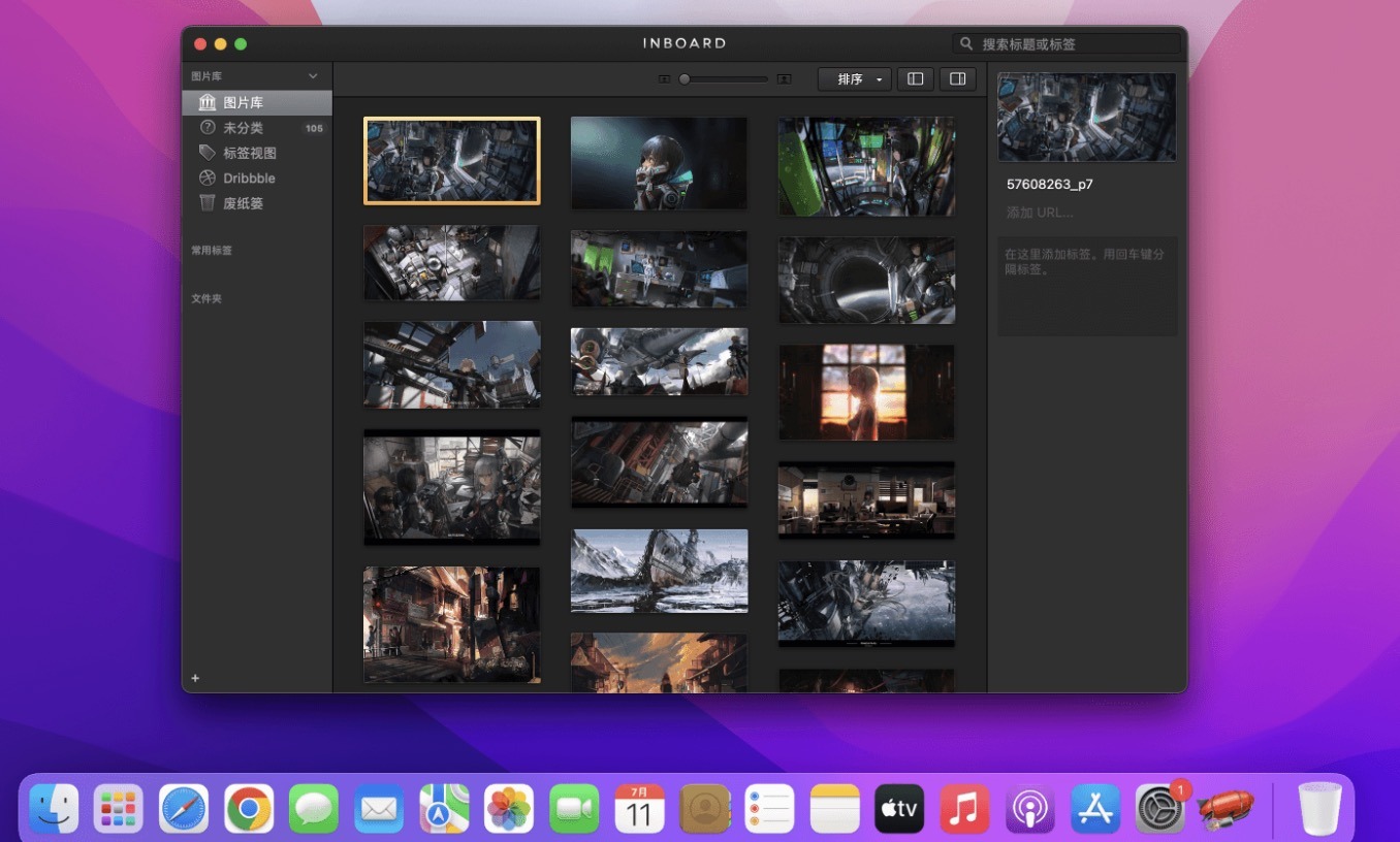 该应用深度集成于 macOS 系统,可无缝与 Finder 协同工作。当你在桌面或文件夹中看到感兴趣的图像时,只需简单拖拽或通过快捷操作,即可将其添加到 Inboard 的可视化库中,而无需打乱原有文件结构。所有收录的图像会以缩略图形式呈现在清爽的画廊视图中,并支持按日期、标签、来源或自定义分类进行筛选,让查找变得直观高效。